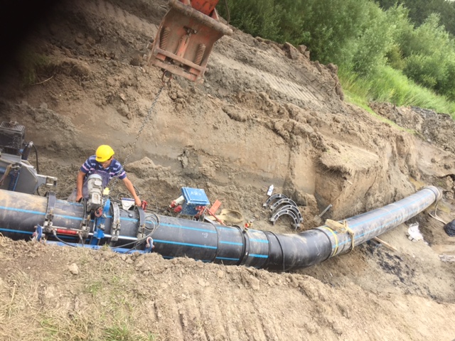 Meer over spiegellassenBij PE-elektromoflassen wordt de buis uitwendig geschild en schoongemaakt. Na plaatsing van de mof op de buis wordt de mof ingeklemd en wordt een in de fitting aangebrachte weerstandsdraad verwarmd door middel van stroom.